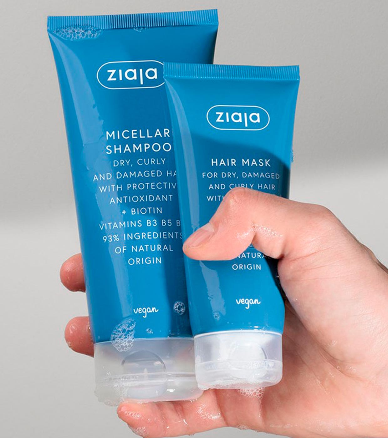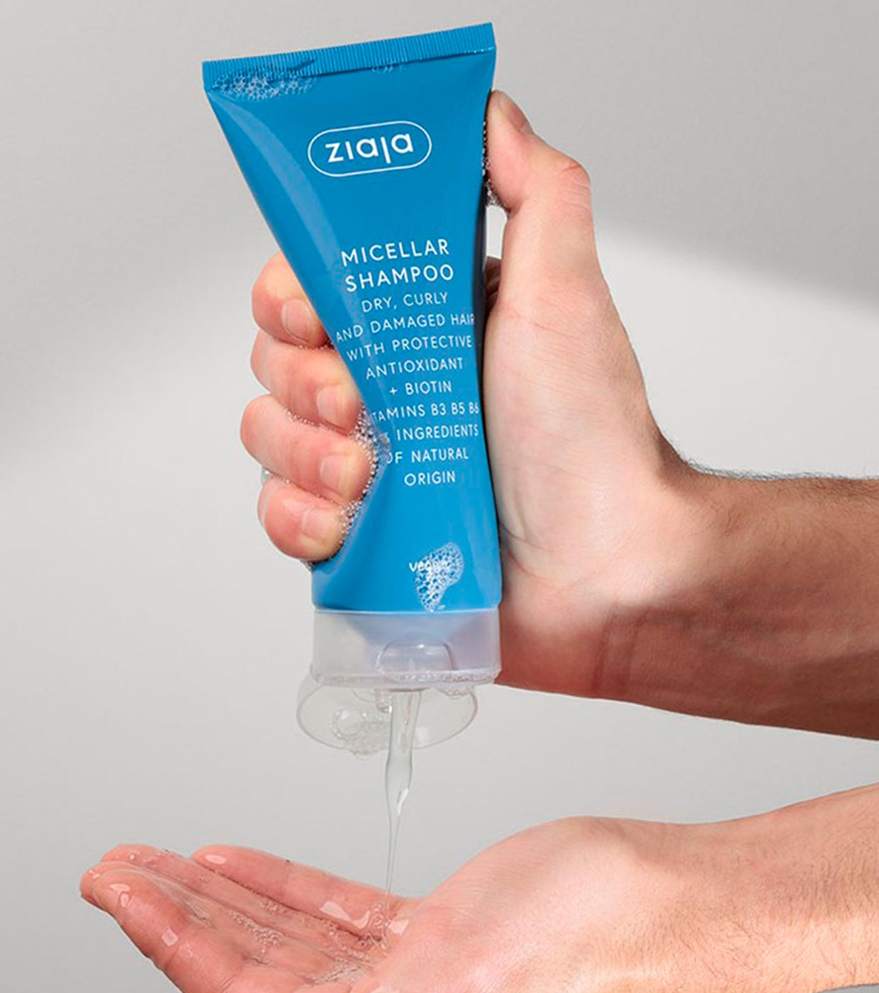 Champú micelar de Ziaja para cabellos dañados, quebradizos, teñidos, rizados, rebeldes, de porosidad media y alta. Contiene protección antioxidante.