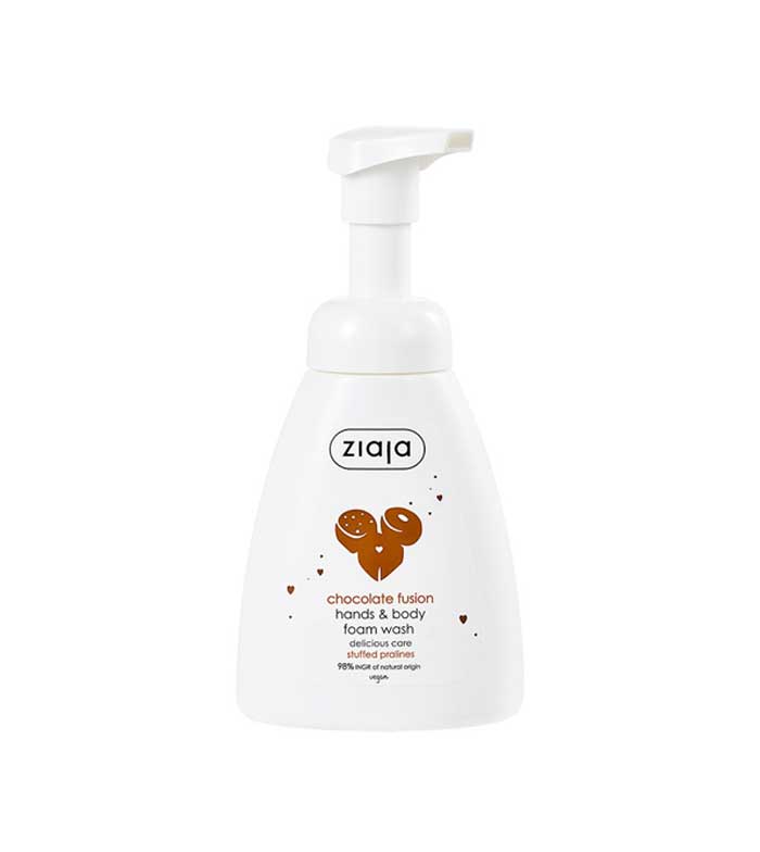 Jabón en espuma para manos y cuerpo Chocolate Fusion de Ziaja con un increíble aroma a bombón de praliné, de la línea Delicious Skin Care.