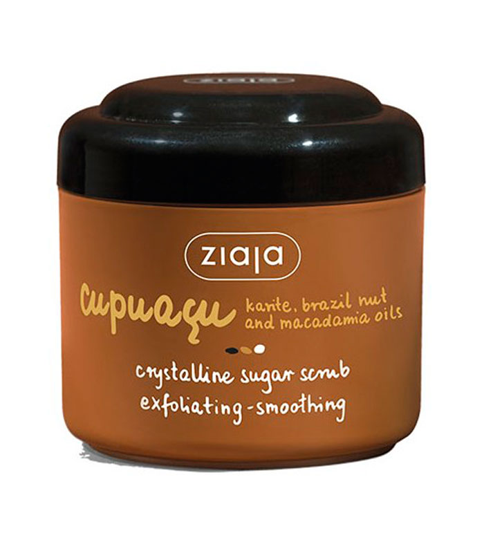 Contiene azúcar y cáscara de nuez, rico en emolientes líquidos y microcera.
