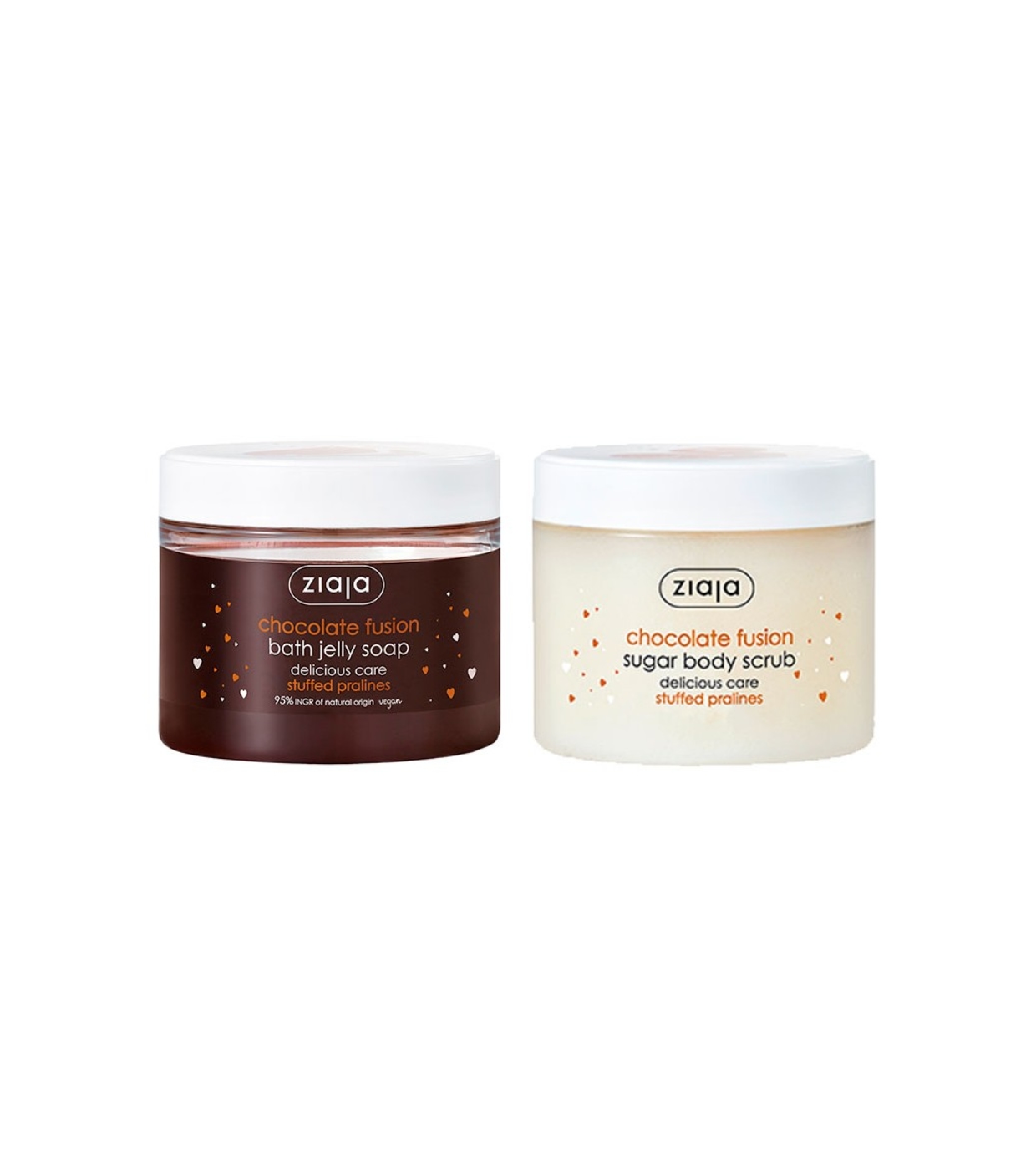 El Set de regalo Chocolate Fusion de Ziaja incluye una irresistible combinación para el cuidado de la piel: una gelatina de baño de 260 ml y un exfoliante corporal de 300 ml.