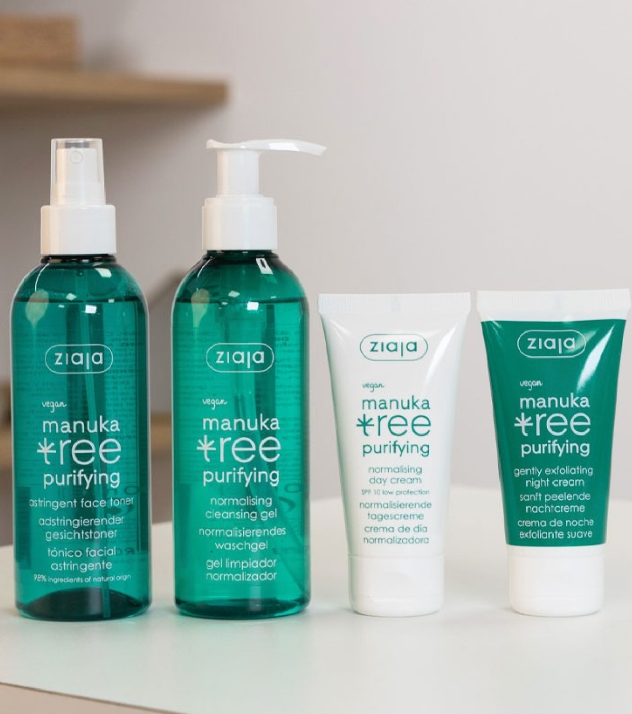 Descubre el secreto de una piel purificada, equilibrada y sin imperfecciones con el Set de regalo Manuka Tree Purifying de Ziaja, una rutina diaria completa diseñada para pieles mixtas y grasas.